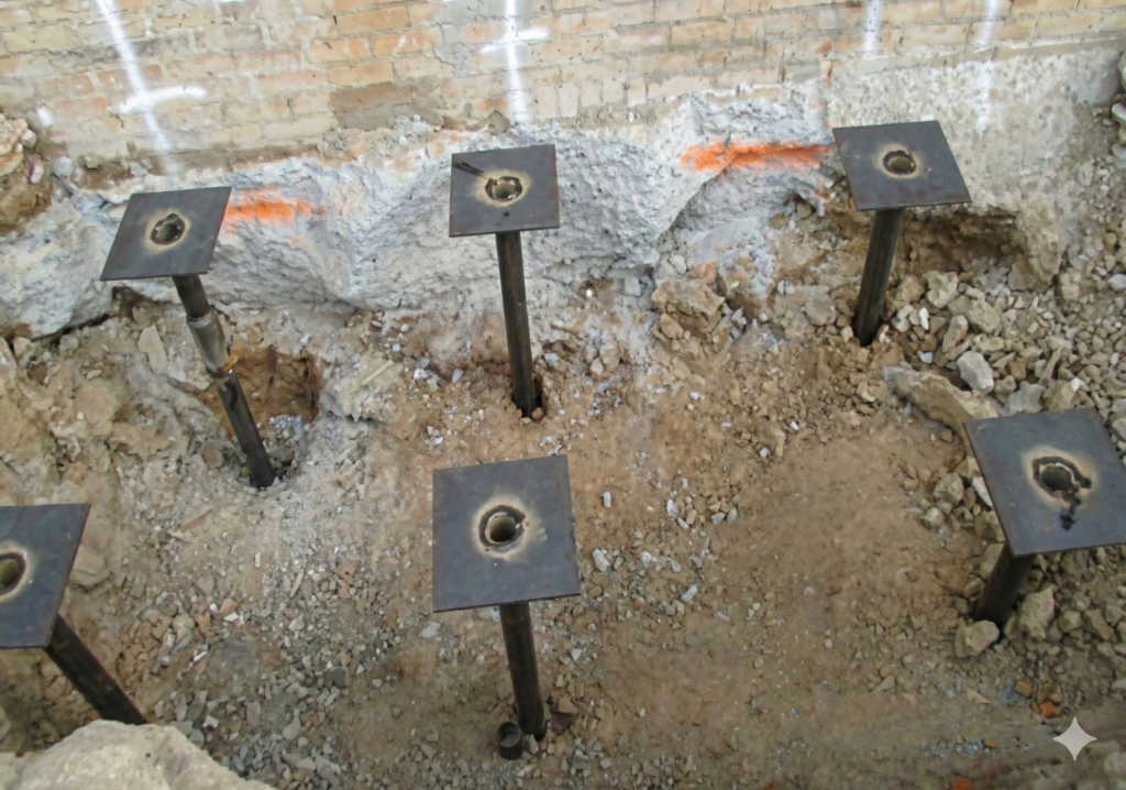 Our experts evaluate the soil composition and determine the optimal length and spacing of each pier based on the building’s load requirements.